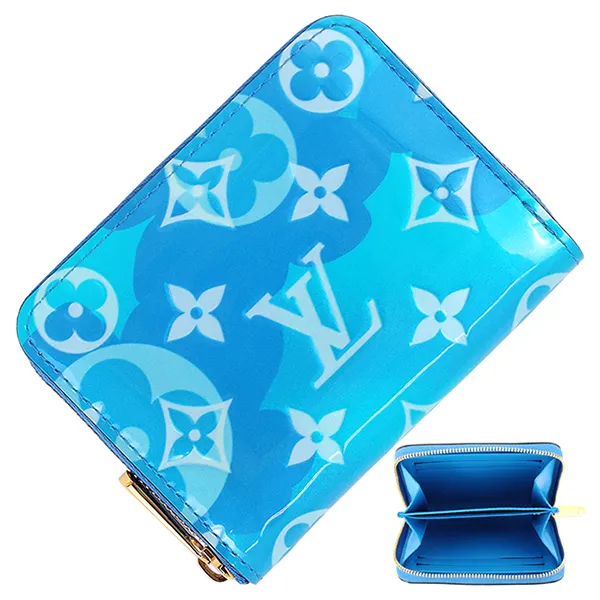 ルイヴィトン ジッピー コインパース モノグラムヴェルニ ブルー 青 パテントレザー ゴールド金具 コンパクトウォレット ラウンドファスナー財布 ミニ フラワー LV ロゴ 美品